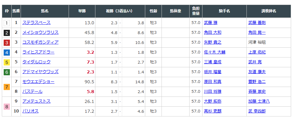 ただし、クラシック前哨戦らしく、ここで一気に評価を上げる伏兵が出てきてもおかしくありません。