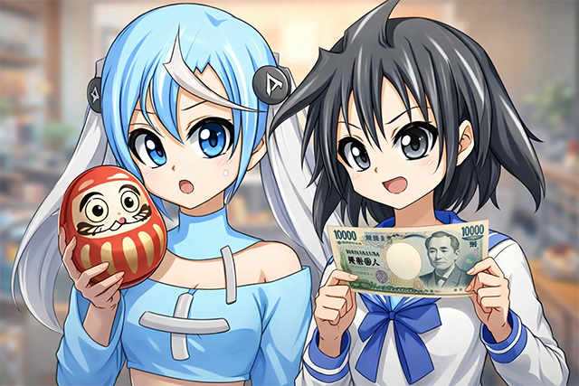 今回の開運アイテムは、だるまとお札(紙幣)です。